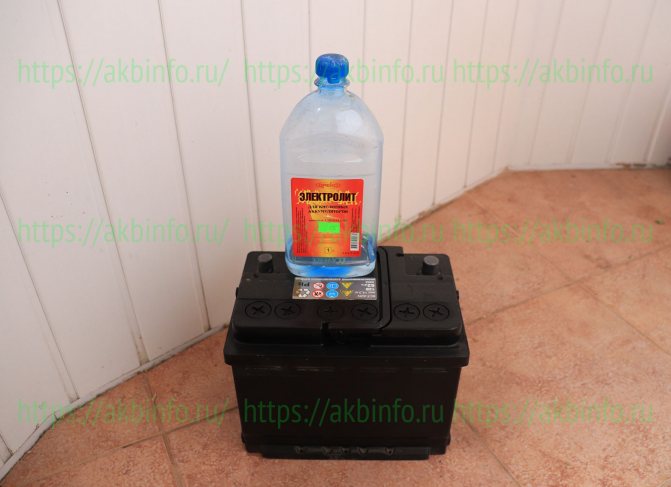 - Затем заливаете покупной или самостоятельно приготовленный электролит с плотностью 1,27─1,29 гр/см3.