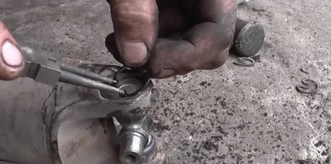 - Круглогубцами или пассатижами с четырёх сторон крестовины снимаются стопорные кольца.