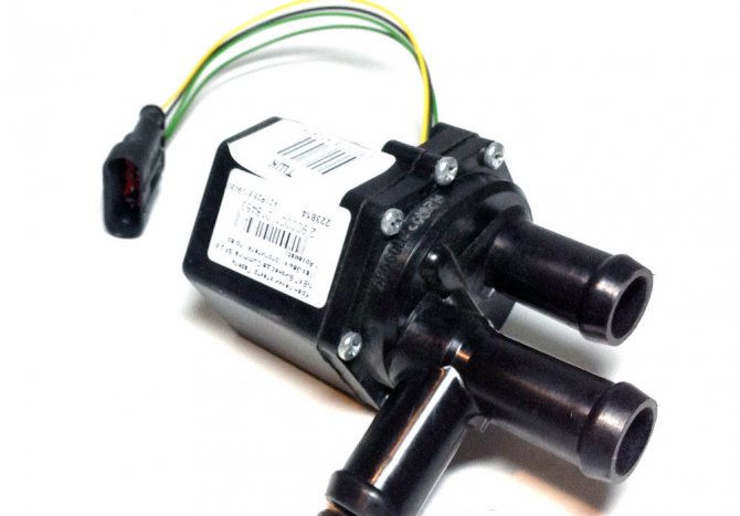 Кран с электроуправлением является аналогом механического крана, однако его привод осуществляется с помощью встроенного электромотора или соленоида. Такое решение позволило отказаться от тросового привода и реализовать управление отопителем с помощью кнопки. Электрические краны дают возможность реализовать различные схемы отопления салона и работы системы охлаждения двигателя, при этом они удобны в применении, надежны в работе и имеют простую конструкцию.