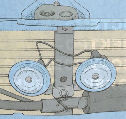 Если один или больше сигналов не действуют, звук будет менее громким и менее приятным. Если вы подозреваете, что один из ваших сигналов не работает, попросите помощника кратко нажать на кнопку сигнала (зажигание включено), пока вы дотрагиваетесь до подозреваемого вами сигнала пальцами. (Рекомендуем вам затычки для ушей, по понятным причинам.) Есть звуковые вибрации? Снимите соединитель проводки, зачистите лепестковые зажимы и затем установите соединитель обратно. Все равно ничего? Если сигнал имеет только один провод, идущий к нему, он крепится на одном монтажном болте, чтобы замкнуть цепь на заземление. Открутите болт сигнала, счистите любую ржавчину и установите обратно.