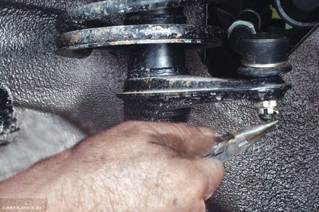 А сейчас важный момент! Если Вы теперь попытаетесь закрутить ключом стяжной болт фланца, то можете запросто повредить на нем резьбу, и это обязательно произойдет, если болт не попадет в выемку на валу. У меня именно так и получилось, поэтому пришлось стянуть фланец более тонким болтом с гайкой и так ехать в магазин запчастей. Подходящим оказался болт крепления шаровой опоры от классики, стоил он рублей 5, поэтому я прикупил прозапас сразу несколько штук.