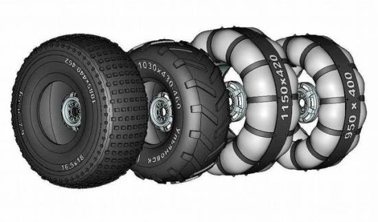 Чаще всего для самостоятельного изготовления используют покрышки от ГАЗ 66 или ЗИЛ 131. Они наиболее доступны. Хорошо показала себя авиационная резина б/у — от вертолётов и самолётов. Если ест доступ к такой резине, это будет лучший вариант, поскольку они намного легче грузовой резины. К тому же стандарты изготовления авиационной резины на порядок выше автомобильной, что скажется на долговечности покрышки. И ещё один немаловажный момент — такие колеса имеют равномерную толщину по всей поверхности, это тоже облегчит задачу.