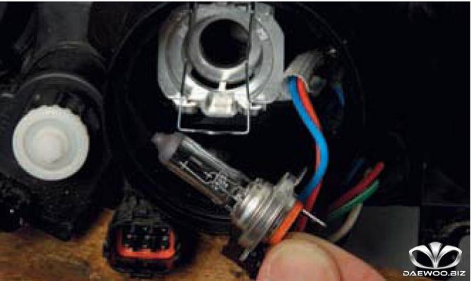 Лампы дальнего и ближнего света фар — галогенные. Не следует касаться их стеклянных колб пальцами, так как следы от них приведут к потемнению лампы. Удалить загрязнение с колбы можно чистой ветошью, смоченной спиртом.
