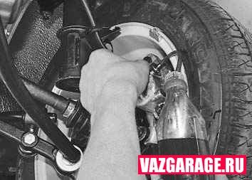 Прокачиваем, как описано выше, тормозной механизм левого переднего колеса, отворачивая штуцер прокачки ключом «на 8».