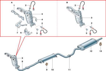 Не все компоненты выхлопа разбираются, некоторые детали, такие как нейтрализатор, а также оба глушителя, их замена производится целиком.