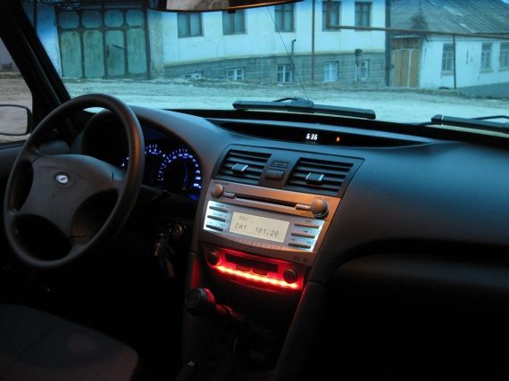 Для второго варианта, если вы хотите осветить всю панель целиком, можно установить либо четыре светодиода расположенных по двое сверху и снизу щитка приборов (расстояние выбирайте сами, оно зависит от того, какую часть щитка приборов вы хотите осветить больше), либо шесть — по три сверху и снизу. В данном случае нужно будет припаивать дополнительные провода, чтобы подключить светодиоды к питанию и высверливать места крепления. Один из вариантов – приклеить светодиоды на клей, если они не совпадают по расположению с местами запитывания. В данном случае рекомендуется использовать только хороший клей, а места установки обязательно обезжирить.