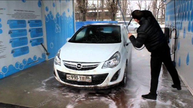 Бесконтактная мойка автомобиля на станции самообслуживания