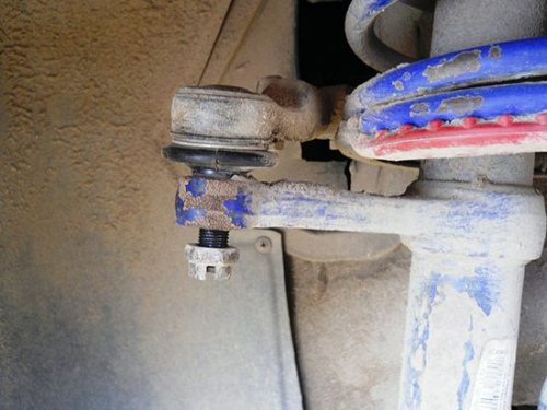 6. Далее необходимо выворачивать рулевой наконечник, скручивая его с тяги. Для этого может понадобиться дополнительный рычаг, к примеру, небольшой кусок трубы или глубокая торцевая головка. Стоит обратить внимание, что левый наконечник откручивается по часовой стрелке, а правый — против. Ниже на фото показано все на примере именно левой стороны: