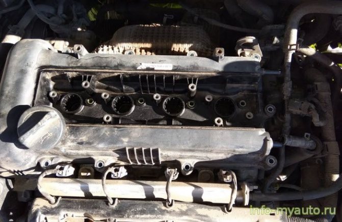 Чтобы добраться до гидронатяжителя, нам нужно снять клапанную крышку. Для этого убираем катушки зажигания, свечи можно не выкручивать, убираем шланги вентиляции.