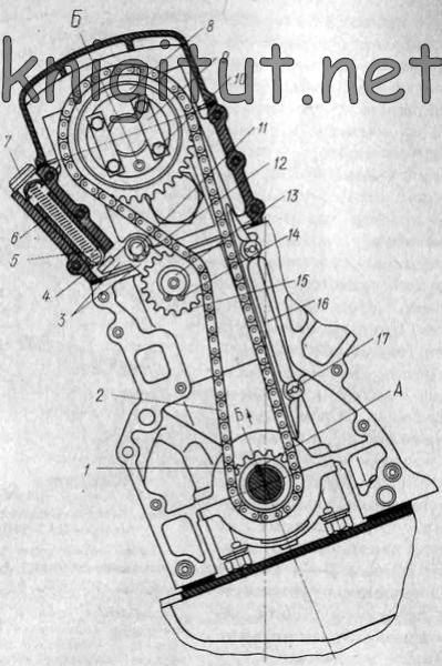 Рис. 13. Схема привода механизма газораспределения двигателя ВАЗ-2105: