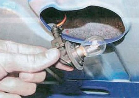 Далее отсоединяем лампочку и ставим взамен ее новую.