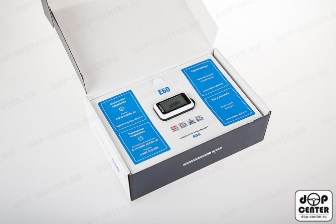 Брелок современного вида красуется сразу после открытия коробки, под ним два блока. В левом — необходимая проводка, в правом — основные элементы системы.