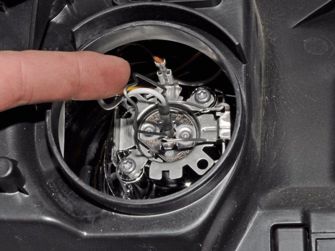 - Затем, нажав на фиксатор, от лампочки нужно отсоединить разъем с проводами.