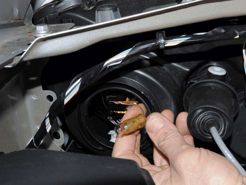Вынимаем лампу из патрона. Новую лампу W5W устанавливаем в обратной последовательности.